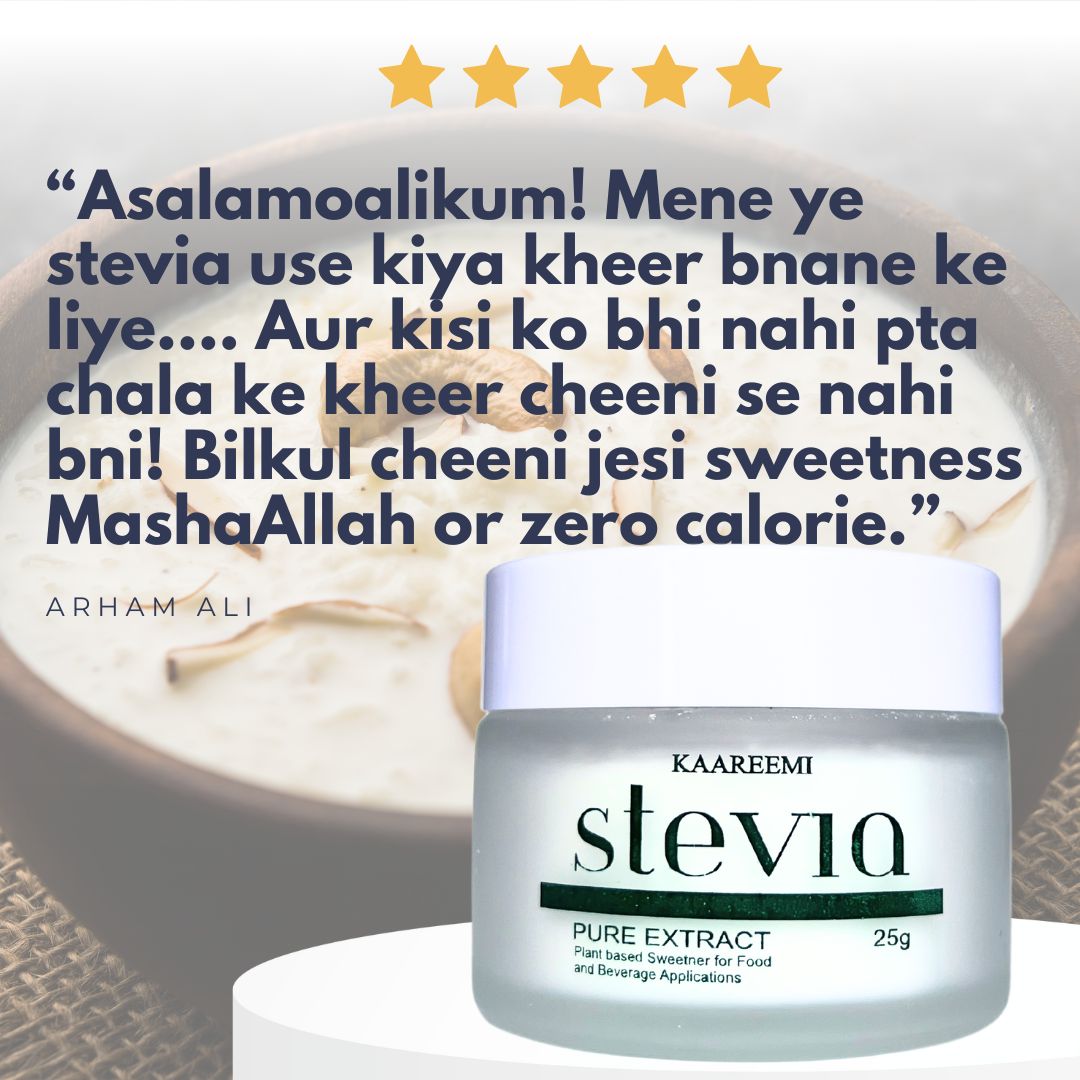 inka Stevia is amazing. natural alternate hai sugar ka. i and my husband are using this from 5 months and v.v satisfied. thankyou kaareemi